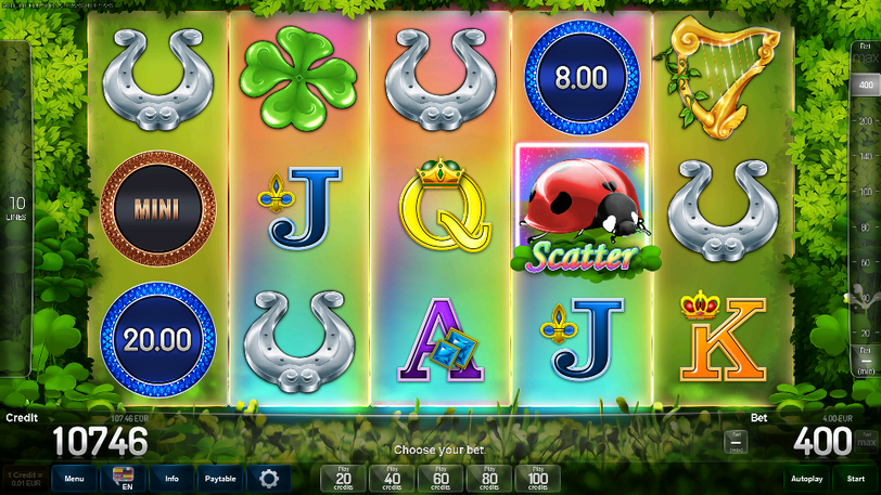 Alle Preise sind für Kombinationen gleicher Art. Alle Preise sind für Kombinationen von links nach rechts, beginnend bei der Walze ganz links. Alle Preise sind auf den gewählten Linien. Wild erscheint auf der 2., 3. und 4. Walze. Wild ersetzt alle Symbole außer Scatter. Während der Freispiele dehnt sich das Wild über die gesamte Walze aus und bleibt an ihr haften. Nur der höchste Gewinn pro gewählter Linie zahlt. Scatter gewähren Freispiele auf jeder Position der Walze. Nur die höchste Anzahl an Freispielen pro Scatter-Kombination wird erhalten. Freispiele werden mit dem Einsatz und den gewählten Linien des auslösenden Spiels gespielt. Freispiele können nicht erneut ausgelöst werden. Freispiele verwenden andere Walzen als das Basisspiel. Maximaler Gewinn ist limitiert auf € 10.000,-. Kredite können mit der Funktionalität “Kredit anzeigen”, unter der Schaltfläche “Einstellungen” angezeigt oder versteckt werden. Mit den Easy-Bet-Tasten haben Sie die Möglichkeit, ein Spiel sofort mit dem angezeigten Einsatz zu starten. Die Spielerbeteiligung hat keinerlei Einfluss auf das Spielergebnis.