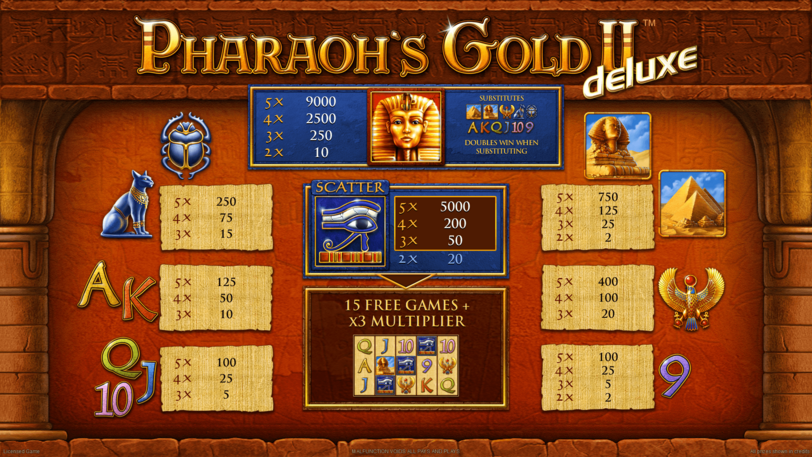 Die Spielregeln und Gewinnsymbole von Novomatic Pharao's Gold II Deluxe schnell erklärt: